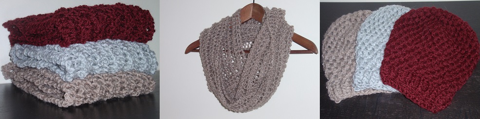 πλεκτό κασκόλ-γιακάς και σκουφάκι